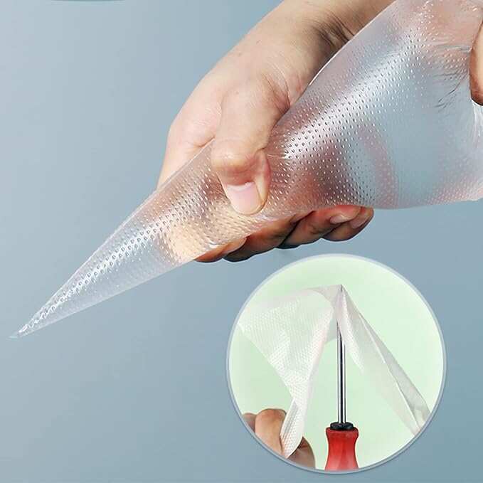 ●THICKENED MATERIAL: Our piping bags are made durable food grade plastic with anti-burst strength and flexibility, thick enough to bear pressure of squeezing and frosting without any burst or leakage.