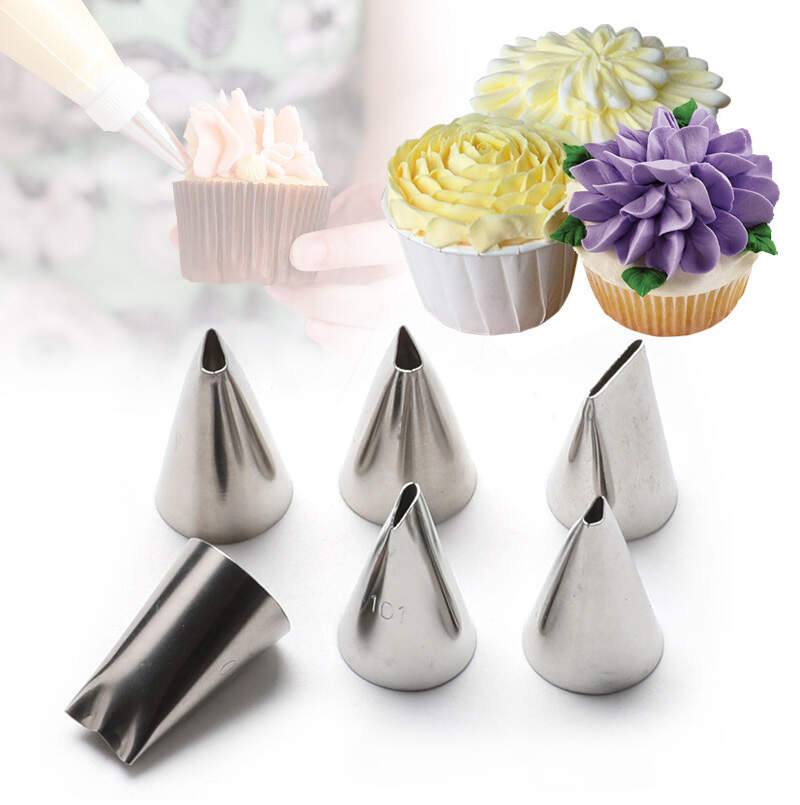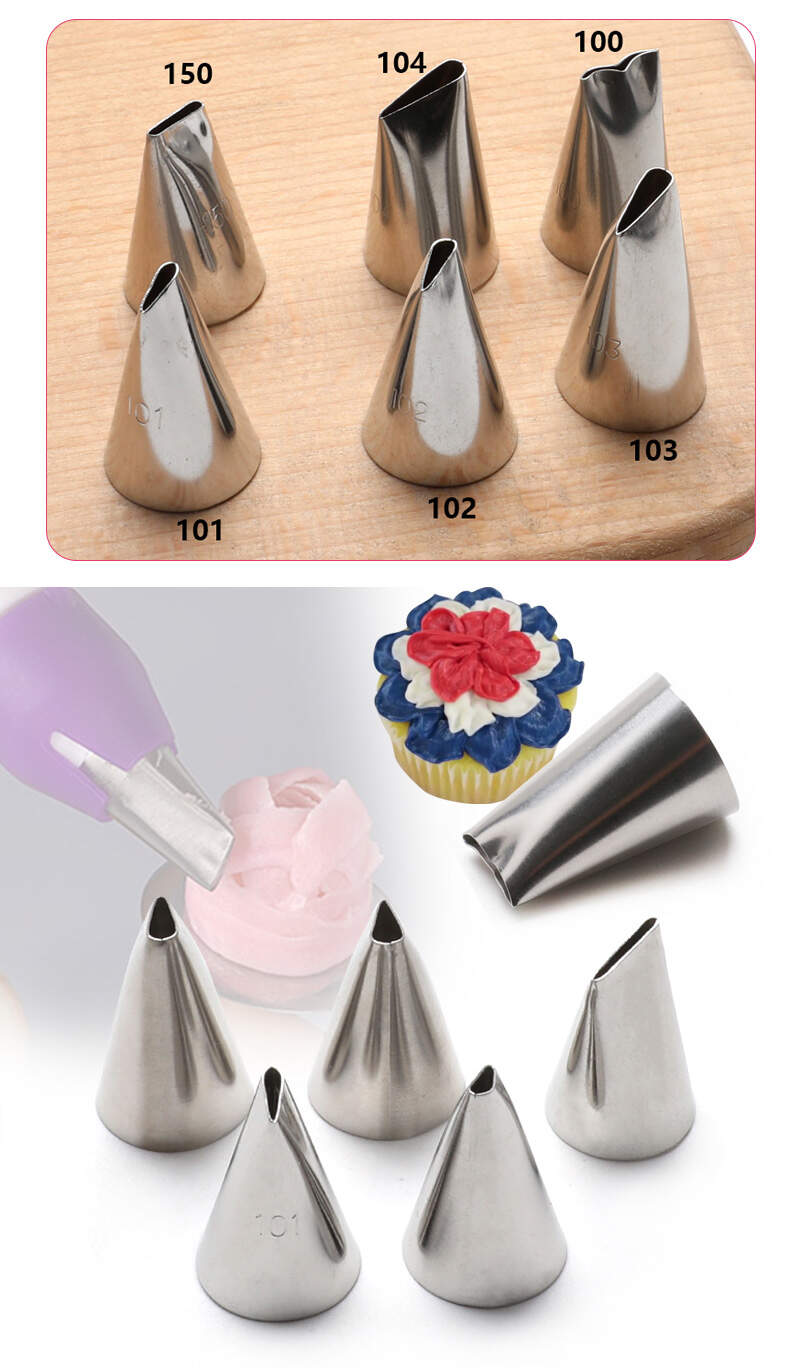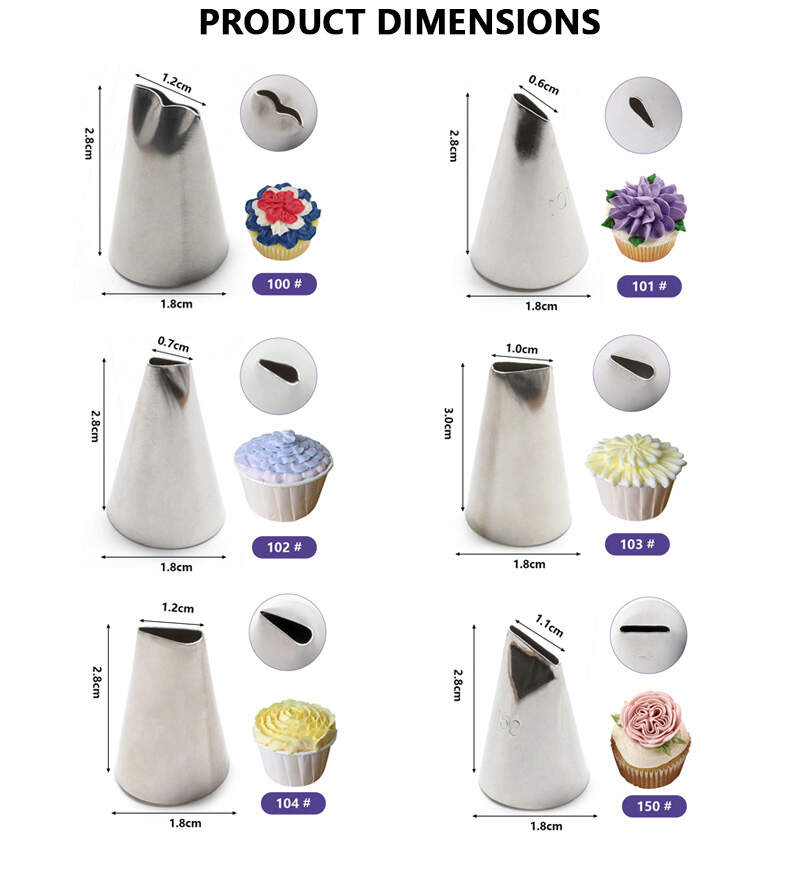 ●【Package Includes】You will receive 6pcs flower piping tips(corresponding to labels 100,101,101,102,103,104,150)with which you can create all kinds of flower patterns on cake.