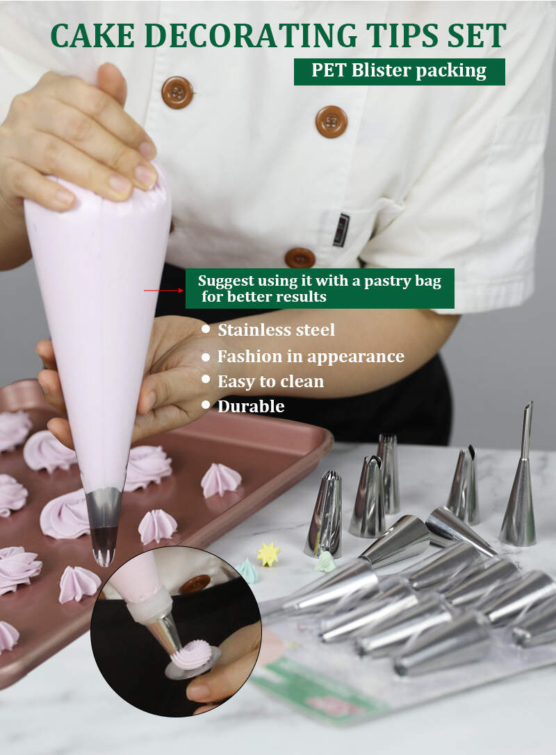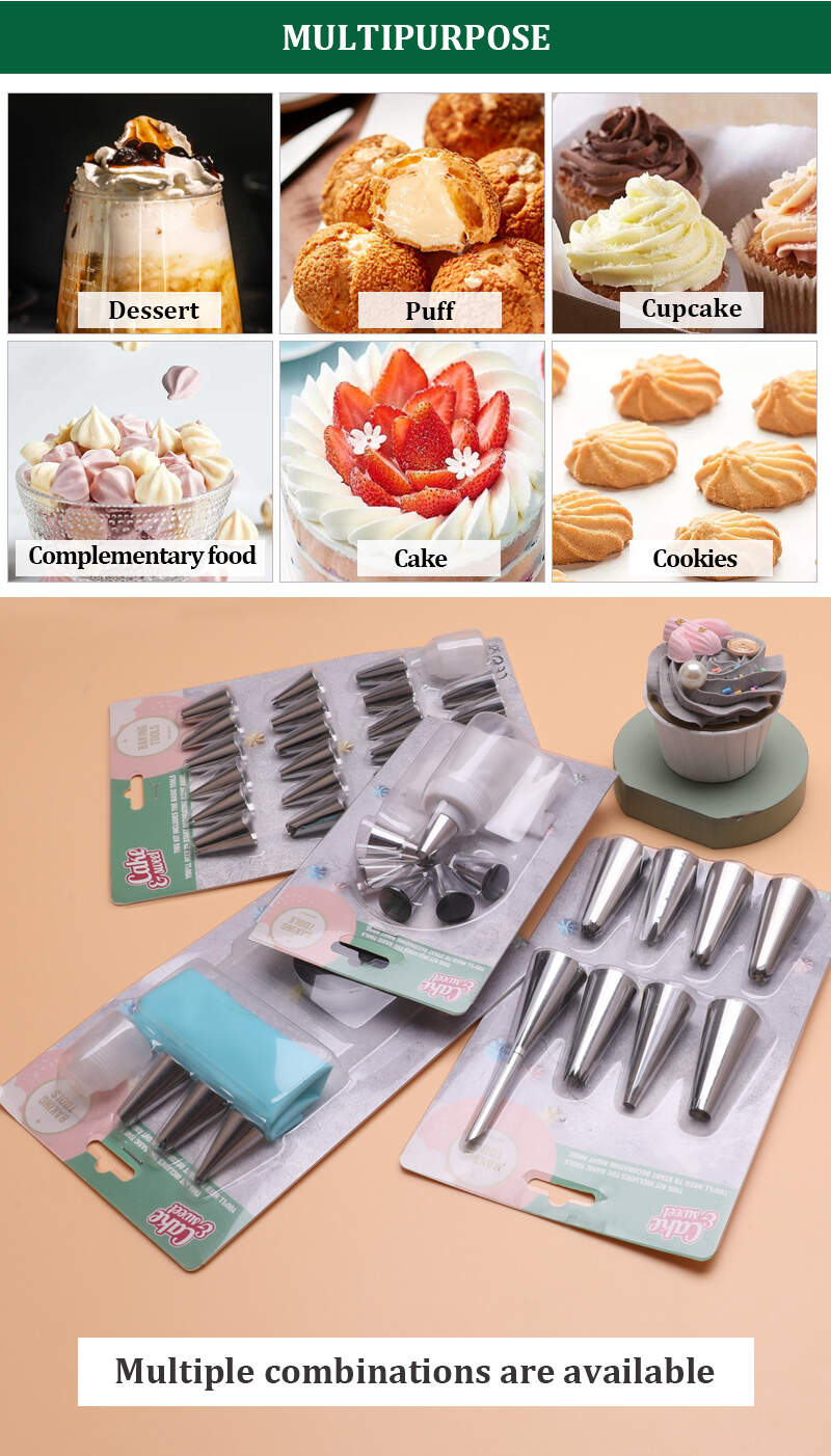 ●【Quality Materials】It's made of food-grade stainless steel that is extremely strong, durable and reliable, so you'll get a pastry decorating kit that will not only serve you for years to come, but also ensure that your family stays absolutely safe and dishwasher safe.