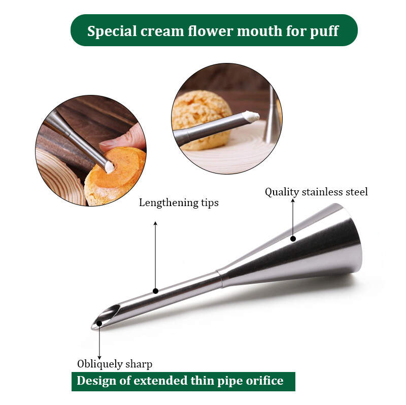 8 Pcs Piping Tips Set ,Stainless Steel Frosting Tips & Eclair Piping Tip for Cream Puff, Donut & Eclair Decoration