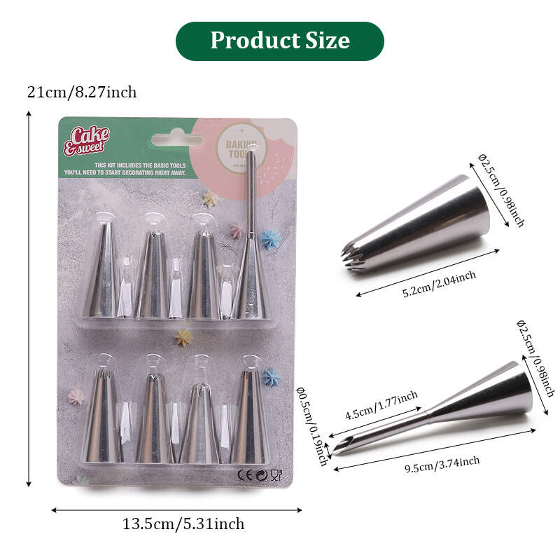 ●【Perfect Gift Choice】Our 8pcs  varisized nozzles  makes a great gift for any occasion, such as birthdays, Christmas, weddings and so on.    It's perfect for your baking needs, you can make a variety of different desserts, such as puffs, cup cakes, cream and other crowded butter.